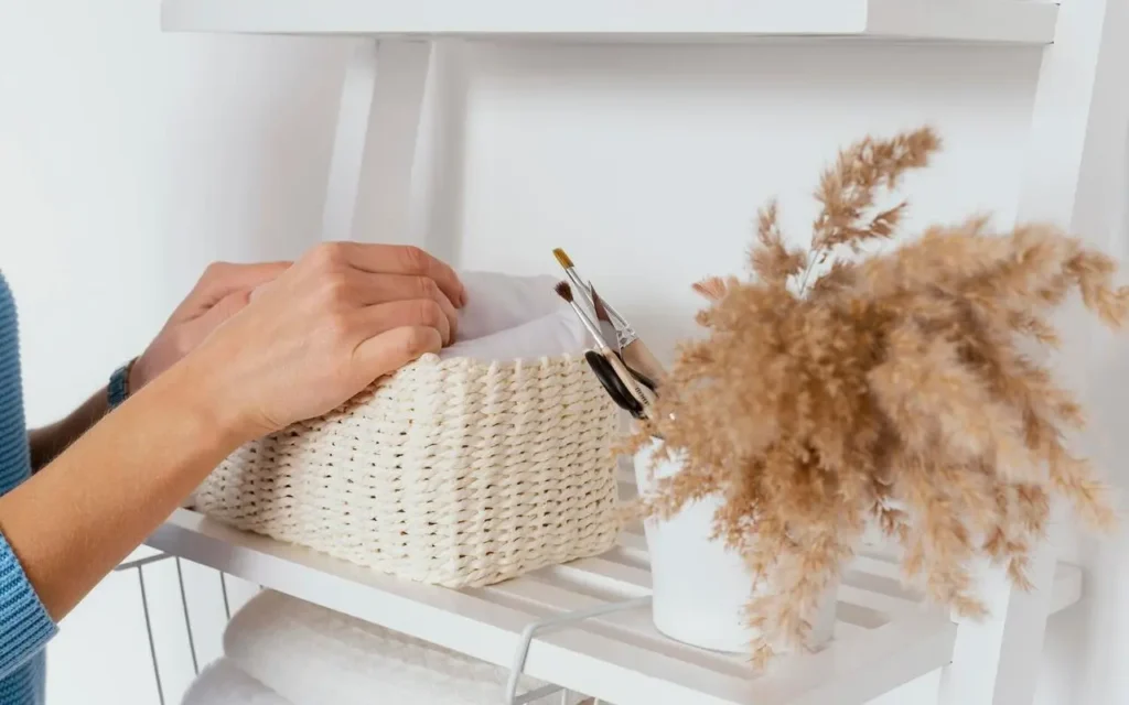 - Zbierz rzeczy z podłogi i ułóż je na półkach – szybkie ogarnięcie wizualnego bałaganu.